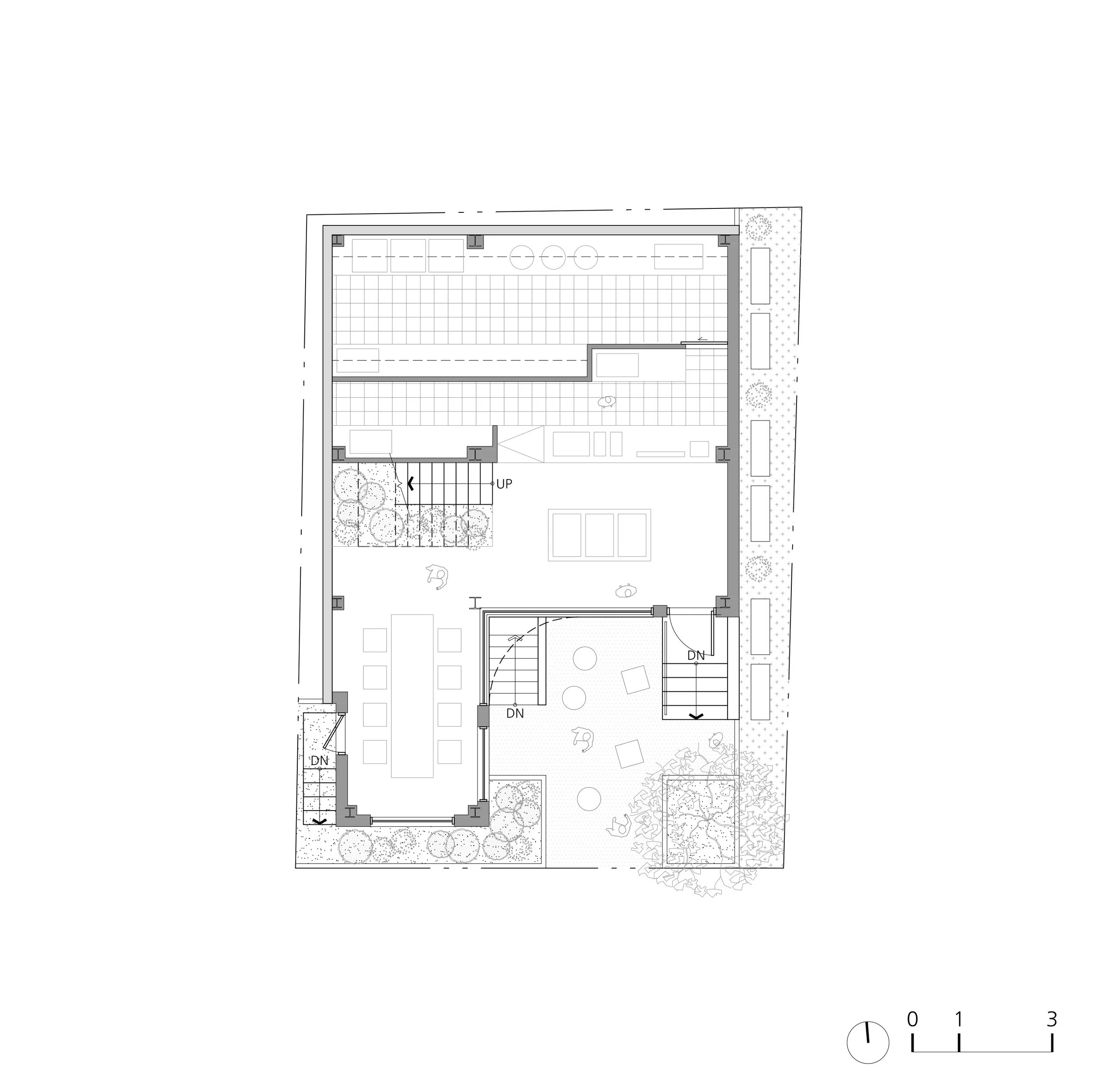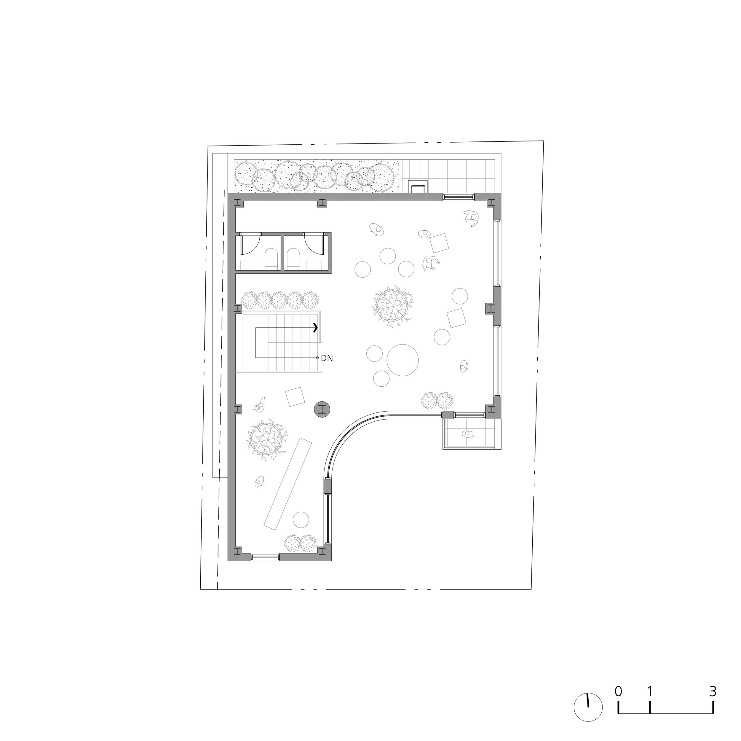 근생용도의 건물 특성상 열려있는 입면이 많이 요구되었다. 자칫하면 열린 면이 너무 많아 건물의 형태가 가려질 것 같았다. 우리는 증축의 과정에서 기존건물의 모습이 사라지더라도 마당을 남긴다면 원형의 가치를 유지할 수 있을 것이라 생각했다.