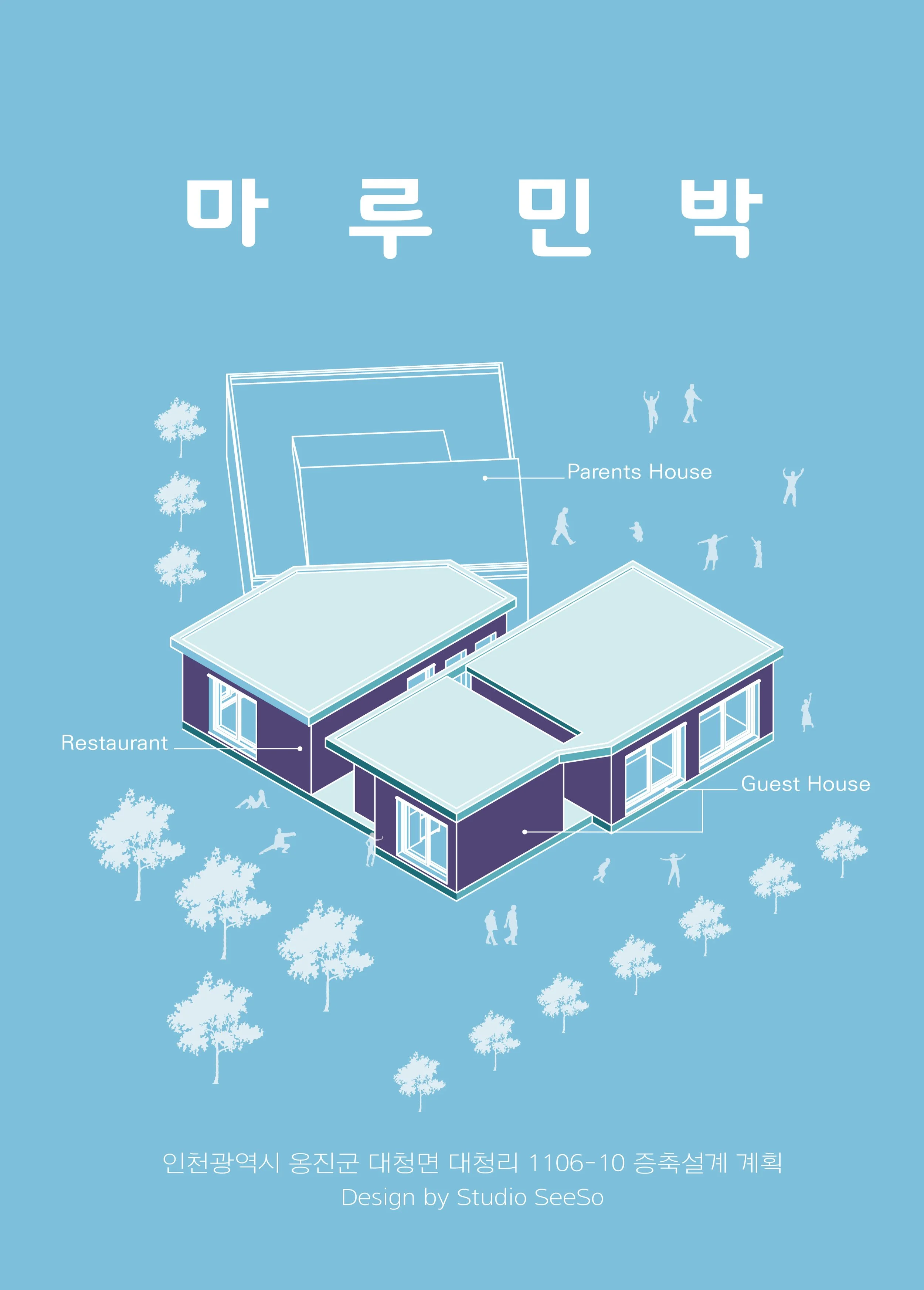 대청도 단독주택 증축 프로젝트는 도시생활을 마치고 시골로 귀향한 부부를 위한 증축 프로젝트이다. 대상건물은 부부의 할아버지부터 살아온 주택으로 가족들에게는 많은 추억이 담긴 장소로 기존 주택을 허물고 새로운 건물을 짓는 방식이 아닌 기존 단독주택은 유지한 채, 부모님의 노후를 위한 민박 시설과 식당을 증축하고자 하였다.